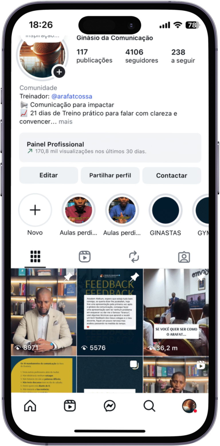 Para garantir o acesso, é necessário que o participante siga o perfil deAulas do Ginásio da Comunicação e que este o permita acesso.